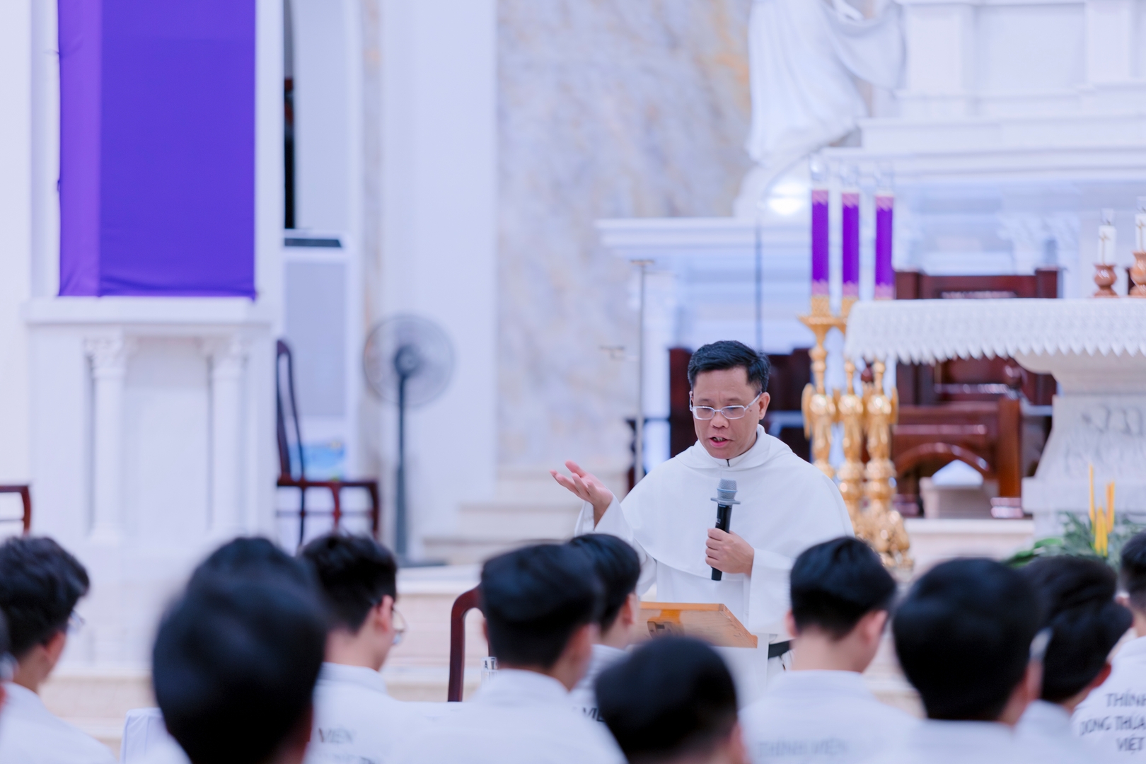 Đồng hành với quý cha, quý thầy và toàn thể anh em trong những ngày này là Cha Giuse Đinh Tiến Hưng, O.P.. Qua những bài chia sẻ sâu sắc, cha đã giúp cộng đoàn đào sâu ý nghĩa của việc lắng nghe Lời Chúa trong đời sống thánh hiến. Không chỉ là việc nghe bằng tai, nhưng là lắng nghe bằng cả con tim – để Lời Chúa thực sự chạm đến, biến đổi và hướng dẫn đời sống mỗi người. Những suy tư của cha đã gợi mở cho anh em ý thức hơn về việc trở về với nội tâm, nhận ra những giới hạn của bản thân và can đảm bước vào hành trình hoán cải.