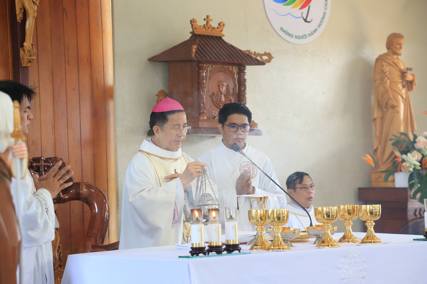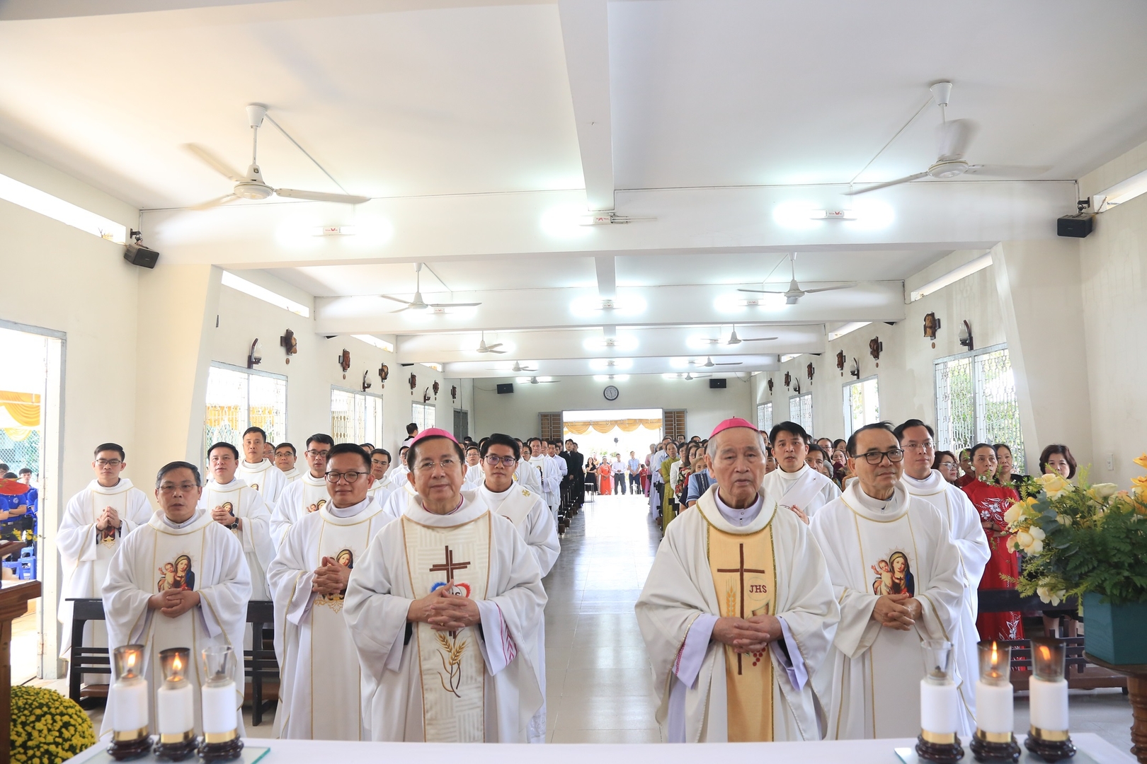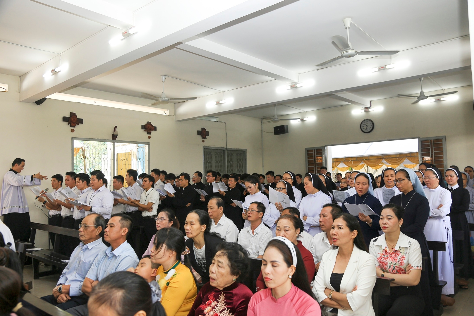 Vào lúc 10h00, Thánh Lễ Tạ Ơn và Mừng Bổn Mạng Tỉnh Dòng đã được Đức Cha Giuse Nguyễn Tấn Tước, Giám mục Giáo phận Phú Cường, chủ tế.