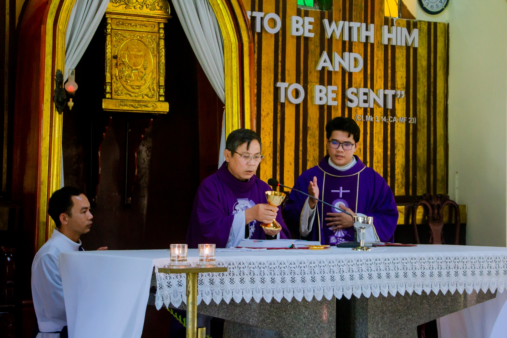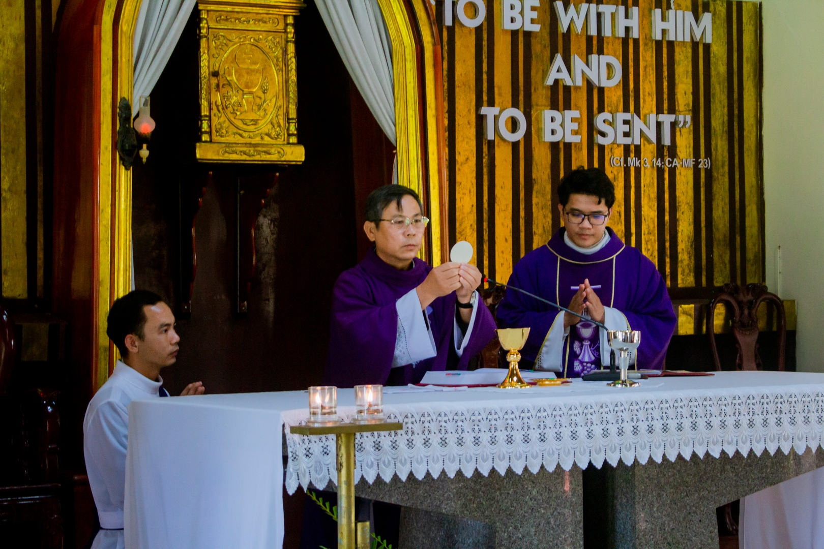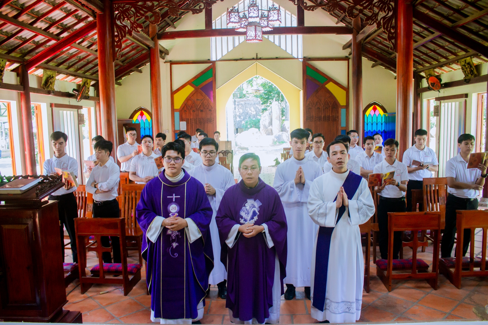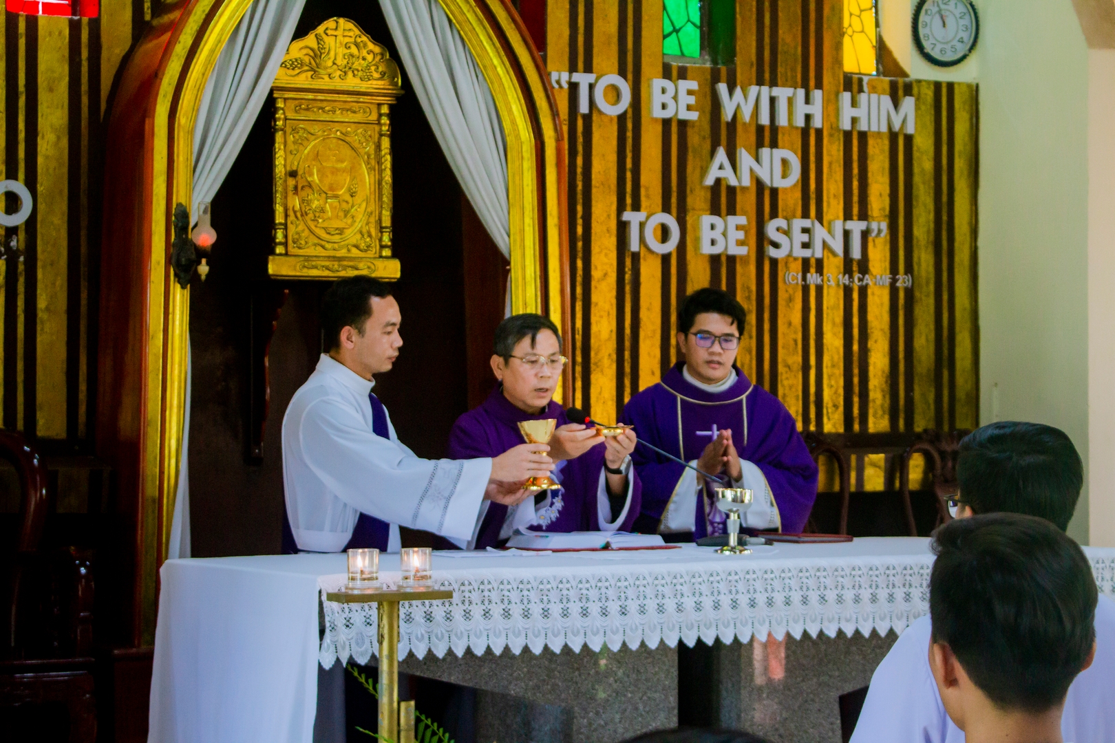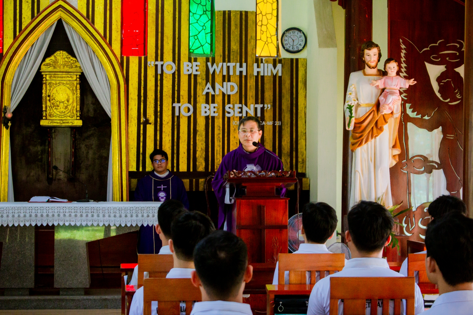 Trong bài chia sẻ, Cha giảng phòng mời gọi anh em suy niệm câu Lời Chúa: “Ông Giuse làm như Sứ Thần Chúa dạy và đón vợ về nhà” (Mt 1,24). Qua hình ảnh Thánh Giuse, mỗi thỉnh sinh được mời gọi học nơi Ngài tinh thần thinh lặng, biết lắng nghe và mau mắn thi hành thánh ý Thiên Chúa. Trước những biến cố của cuộc đời, Thánh Giuse luôn giữ một con tim khiêm tốn và đầy yêu thương, nhạy bén trước ý định của Thiên Chúa và không để những nghi ngờ hay ghen ghét làm xao động tâm hồn. Từ đó, mỗi thỉnh sinh được mời gọi tự hỏi trong hành trình ơn gọi của mình: “Lạy Chúa, Chúa muốn con là gì?” Cao điểm của ngày tĩnh tâm là Thánh lễ Chúa nhật IV Mùa Chay – Năm A. Tin Mừng thuật lại việc Chúa Giêsu chữa lành người mù từ thuở mới sinh (x. Ga 9,1–41), nhấn mạnh lời mời gọi mỗi người bước ra khỏi sự mù lòa của tâm hồn để đón nhận ánh sáng của đức tin. Như người mù được Chúa mở mắt để nhìn thấy ánh sáng, người Kitô hữu cũng được mời gọi để cho Chúa soi sáng đời mình, hầu nhận ra sự hiện diện và tình yêu của Ngài trong hành trình theo Chúa.